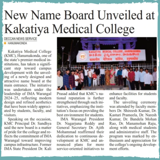 Kakatiya Medical College cordially invites you to the Appreciation Award Ceremony to celebrate the academic excellence and remarkable achievements of our distinguished faculty and students.