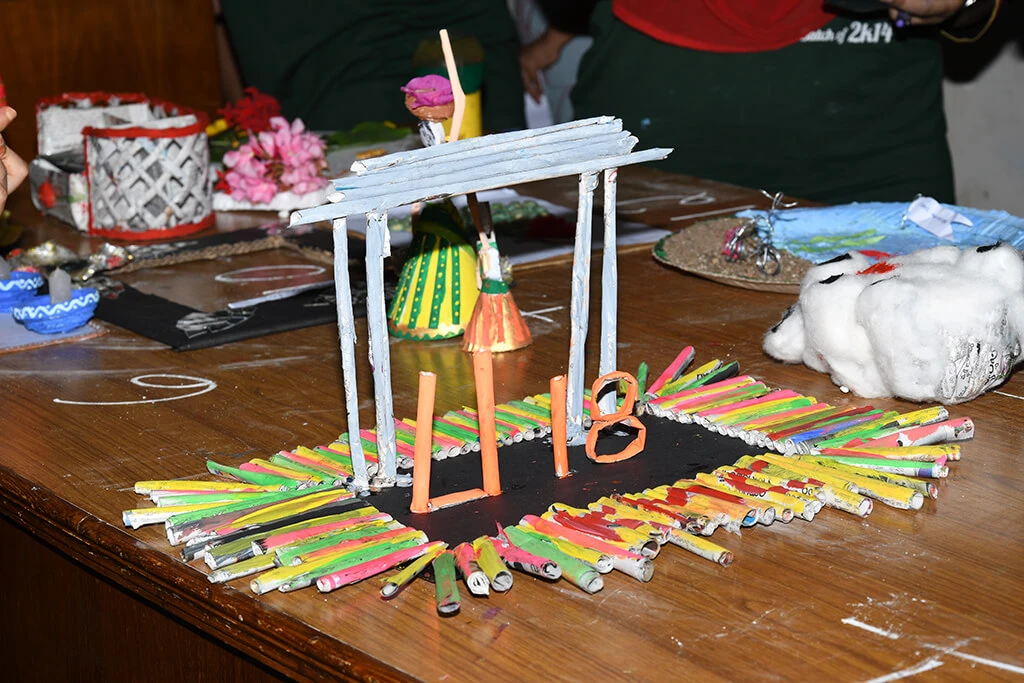 The students showcased their talent via beautiful clay molding greeting card making, micro art and had a fun time playing anthakshari
